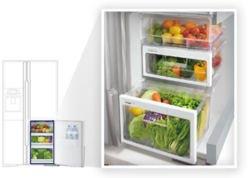 蔬果室内采用封闭抽屉式设计,防止冷风直接吹拂蔬果,温和保温冷却能够持续维持适度在约90%,实现理想的蔬果保鲜洁净空间。